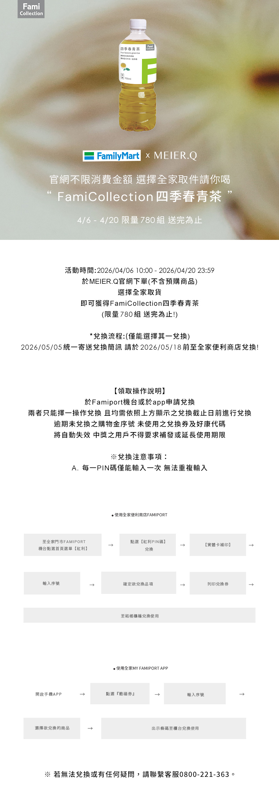 4/6-4/20 取件選全家 請你喝FamiCollection四季春青茶